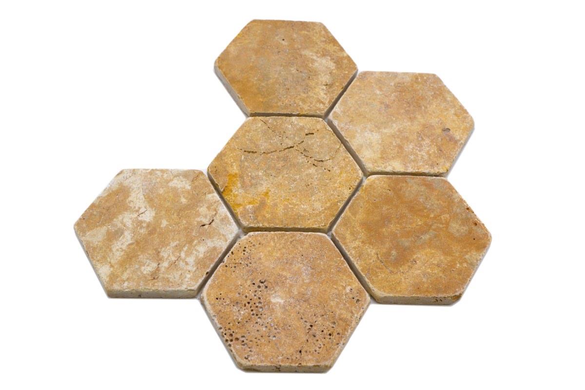 Gold Traverten Tumled Big Hexagon