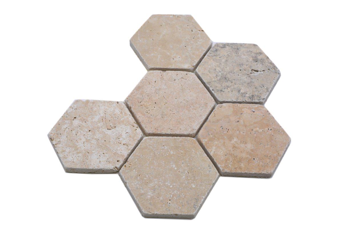 Light Chiaro Traverten Tumbled Big Hexegon 98x110x10mm